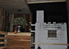 аня с настоящей печью и банщиком в частном секторе. Есть общественный зал и зал для компаний.