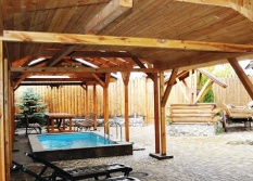 Зал с купелью во дворе, своей лаунж зоной на улице и настоящей печью для растопки. есть возможность заказа банщика для различных процедур.